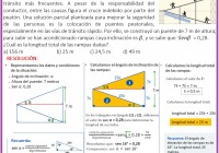 De acuerdo con las estadísticas, los atropellos son los accidentes de tránsito más frecuentes. A pesar de la responsabilidad del conductor, entre las causas figura el cruce indebido por parte del peatón. Una solución parcial planteada para mejorar la seguridad de las personas es la colocación de puentes peatonales, especialmente en las vías de tránsito rápido. Por ello, se construyó un puente de 7 m de altura; para subir se han acondicionado rampas cuya inclinación es β, y se sabe que Senβ = 0,28. ¿Cuál es la longitud total de las rampas dadas? a) 156 m b) 25 m c) 24,5 m d) 49 m
