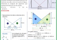 Se observa que dos postes de luz de 360 cm de altura, ubicados a una distancia de 600 cm, iluminan una calle, como lo muestra la figura. Determina la longitud del segmento que queda iluminado por los dos postes. a) 1,2 m b) 2,4 m c) 3,6 m d) 4,8 m