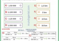 Se toma una medida de 10 cm en cuatro mapas con escalas distintas. Relaciona las escalas con la distancia geométrica real que corresponde a esa medida.