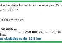 Si en un plano de una ciudad, dos localidades están separadas por 25 cm. ¿Cuál sería la distancia entre las dos, si la escala del plano es 1: 50000?