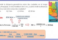 Diego mide la distancia geométrica entre dos ciudades en el mapa (Cusco y Arequipa). Si esta medida es de 3 cm, ¿cuánto mide la distancia geométrica real entre estas dos ciudades? a) 1 km b) 3 km c) 10 km d) 30 km