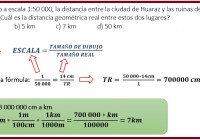 En un plano a escala 1:50 000, la distancia entre la ciudad de Huaraz y las ruinas de Wilcahuaín es 14 cm. ¿Cuál es la distancia geométrica real entre estos dos lugares? a) 35 km b) 5 km c) 7 km d) 50 km