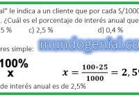 El banco “mundogenial” le indica a un cliente que por cada S/1000 que ahorre ganará un interés de S/25 al año. ¿Cuál es el porcentaje de interés anual que ganaría este cliente? a) 4,25 % b) 3,25 % c) 2,5 % d) 0,4 %
