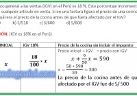 El impuesto general a las ventas (IGV) en el Perú es 18 %. Este porcentaje incrementa el precio de cualquier artículo en venta. Si en una factura figura el precio de una cocina en S/590, ¿cuál era el precio de la cocina antes de que fuera afectado por el IGV? a) S/500 b) S/518 c) S/600 d) S/608