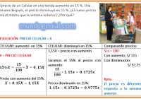 El precio de un Celular en una tienda aumentó en 15 %. Una semana después, el precio disminuyó en 15 %. ¿El nuevo precio será el mismo que la semana anterior? ¿Por qué?