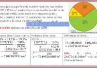 Sabemos que la superficie de nuestro territorio nacional es de 1 285 215,6 km2. La distribución de nuestro territorio, de acuerdo con el INEI, se muestra en el siguiente gráfico circular: ¿Cuántos kilómetros cuadrados más tiene la selva con respecto a la costa y la sierra juntas?