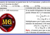 Si en medio kilogramo de manzanas se puede tener de 4 a 6 manzanas, ¿cuál es el menor peso que puede obtenerse con 9 docenas de ellas?