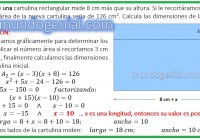 La base de una cartulina rectangular mide 8 cm más que su altura. Si le recortáramos 3 cm a su altura, el área de la nueva cartulina seria de 126 cm^2. Calcula las dimensiones de la cartulina inicial.
