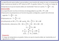 La especificación para realizar unas pruebas a una muestra de campo es que su temperatura debe mantenerse desde los 340F hasta los 600F. En grados Celsius (°C), ¿cuál es el rango de temperatura en que la muestra debe ser mantenida? Tener en cuenta: °C = 5/9(°F – 32).