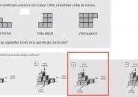 Sergio ha construido una torre con cubos. Estas son las tres vistas de la torre. ………… ¿Cuál de las siguientes torres es la que Sergio construyó?