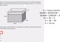Teresa acaba de comprar una pecera que tiene forma de prisma recto y base rectangular. Ella echa agua en la pecera de tal forma que el nivel de agua se ubica a “x” cm de su borde superior. Observa. …….. Si se sabe que el agua ocupa 36 000 cm^3 de la pecera, ¿a cuántos centímetros del borde superior se encuentra el nivel de agua?