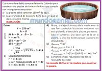 Cuánta madera debió comprar la familia Cutimbo para construir una piscina de forma cilíndrica que cumpla con los siguientes requisitos: A) La piscina debe contener 250 m3 de agua. B) La profundidad de la piscina tiene que ser igual al diámetro de la misma