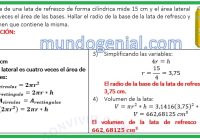 La altura de una lata de refresco de forma cilíndrica mide 15 cm y el área lateral mide 4 veces el área de las bases. Hallar el radio de la base de la lata de refresco y el volumen que contiene la misma