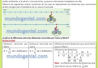 Laura y Mario usan la bicicleta para ir a estudiar porque es una opción ecológica que beneficia al medio ambiente, a la salud y a la economía, ya que es más barato trasladarse en ella. Observa las siguientes rectas numéricas en las que se representan las distancias que recorrieron ambos amigos para trasladarse de su casa a la escuela.