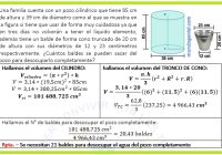 Una familia cuenta con un pozo cilíndrico que tiene 85 cm de altura y 39 cm de diámetro como el que se muestra en la figura si tiene que usar de forma muy cuidadosa ya que en tres días no volverán a tener el líquido elemento, además tiene un balde de forma cono truncado de 20 cm de altura con sus diámetros de 12 y 23 centímetros respectivamente. ¿Cuántos baldes se pueden sacar del pozo para desocuparlo completamente?