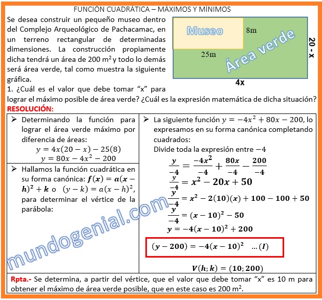 Se desea construir un pequeño museo dentro del Complejo Arqueológico de Pachacamac, en un terreno rectangular de determinadas dimensiones. La construcción propiamente dicha tendrá un área de 200 m2 y todo lo demás será área verde, tal como muestra la siguiente gráfica.