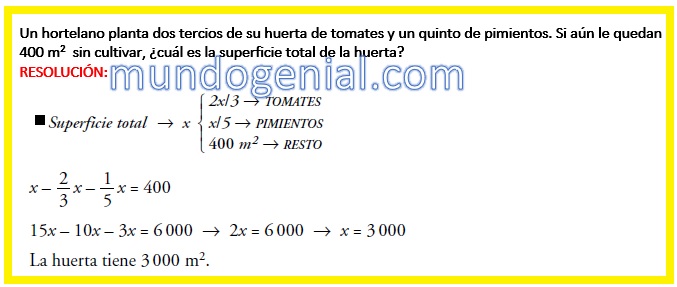 Un hortelano planta dos tercios de su huerta de tomates y un quinto de pimientos. Si aún le quedan 400 m^2 sin cultivar, ¿cuál es la superficie total de la huerta? By admin | 20 agosto, 2023 0 Comment publicidad