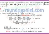 Lucy Elena, en un juego, apuesta 5 veces consecutivas. En las dos primeras, pierde 20% y 10%, y en las tres últimas gana 40%, 30% y 50% de lo que iba quedando. Si se retiró con S/ 24 570, ¿cuánto tenía al iniciar?