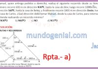 Manuel, quien entrega pedidos a domicilio, realiza el siguiente recorrido desde su tienda: primero recorre 600 m en dirección N30^oE, hasta la casa de Alex; luego recorre 1200*3^1/3 m, en dirección S60^oE, hasta la casa de Belén; y finalmente recorre 1800 m en dirección Oeste, hasta la casa de Carlos. ¿Qué dirección debe tomar Manuel, desde la casa de Carlos, para retornar a la tienda realizando un recorrido mínimo?