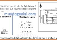 Calcula las dimensiones reales de la habitación 3 sabiendo que las medidas que hay indicadas en el plano corresponden a cm.