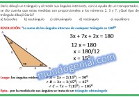 Darío dibujó un triángulo y al medir sus ángulos interiores, con la ayuda de un transportador, se dio cuenta que estas medidas son proporcionales a los números 2, 3 y 7. ¿Qué tipo de triángulo dibujó Darío?
