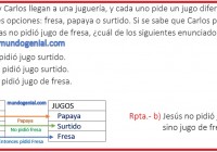 Jesús, Elías y Carlos llegan a una juguería, y cada uno pide un jugo diferente entre las siguientes opciones: fresa, papaya o surtido. Si se sabe que Carlos pidió jugo de papaya y Elías no pidió jugo de fresa, ¿cuál de los siguientes enunciados es correcto? a) Elías no pidió jugo surtido. b) Jesús no pidió jugo surtido. c) Jesús no pidió jugo de fresa.