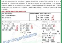 María Elena es una estudiante de quinto de Secundaria que padece de anemia. Él está siguiendo una dieta especial. Se sabe que, si suma la cantidad de calorías que le proporcionan los carbohidratos y las proteínas que ingiere, obtiene 2000 calorías. Si suma la cantidad de calorías que le proporcionan las proteínas y grasas consumidas obtiene 1250 calorías. Si suma la cantidad de calorías que provienen de los carbohidratos y grasas obtiene 1650 calorías. ¿Cuántos gramos de carbohidratos, proteínas y grasas consume al día? Recuerda que 1 gramo de carbohidratos proporciona 4 calorías, 1 gramo de proteínas 4 calorías y un gramo de grasa 9 calorías.