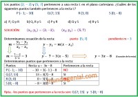 Los puntos (2; – 2) y (5; 7) pertenecen a una recta L en el plano cartesiano. ¿Cuáles de los siguientes puntos también pertenecen a la recta L? P (– 1; – 10) Q (7; 13) R (3; 0) S (0; – 8) SOLUCIÓN: