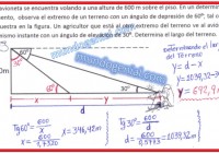 Una avioneta se encuentra volando a una altura de 600 m sobre el piso. En un determinado momento, observa el extremo de un terreno con un ángulo de depresión de 〖60〗^o; tal como se muestra en la figura. Un agricultor que está al otro extremo del terreno ve al avión en ese mismo instante con un ángulo de elevación de 〖30〗^o. Determina el largo del terreno.