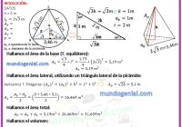 Una pirámide regular triangular la altura mide 5 m y el lado de la base es 2 por la raíz de 3 m. Calcular el área lateral, área total y volumen de la pirámide