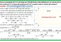 Una piscina rectangular de 15 metros de largo por 9 metros de ancho está rodeada por un camino de cemento de ancho uniforme. Si el área del camino es 81 m^2 , ¿Cuánto mide su ancho?