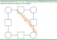 Escribir todos los números (1; 2; 3; 4; 5; 6; 7; y 8) de manera que la DIFERENCIA de los números que están en los círculos sea el número de cada cuadrado. Escribir todos los números (1; 2; 3; 4; 5; 6; 7; y 8) de manera que la DIFERENCIA de los números que están en los círculos sea el número de cada cuadrado. SOLUCIÓN: