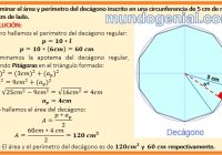 Determinar el área y perímetro del decágono inscrito en una circunferencia de 5 cm de radio y de 6 cm de lado.