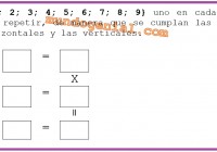 Colocar {1; 2; 3; 4; 5; 6; 7; 8; 9} uno en cada casillero vacío, sin repetir, de manera que se cumplan las igualdades en las horizontales y las verticales.