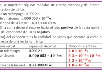 A continuación, se muestran algunas medidas de ciertos eventos y del átomo. Expresa dichas medidas en notación científica. a) Duración de un relámpago: 0,000 2 s b) Diámetro de un átomo: 0,000 053*10^(-5) m c) Longitud de onda de la luz azul: 0,000 000 48 m