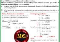 Al revisar la información del INEI 2017, sobre la cobertura del servicio de alumbrado eléctrico en las viviendas de la población indígena u originaria de la Amazonía, se tiene proyectado que para el 2021, de las 168 00 viviendas, el 95% accedería a dicho beneficio. Además, se sabe que 1/5 de viviendas del área urbana más el doble del área rural, que acceden al alumbrado eléctrico, equivale a 89 376 viviendas. 1) ¿Cuánto es la diferencia sobre el acceso al alumbrado eléctrico entre las viviendas ubicadas en área rural y urbana? 2) ¿Qué porcentaje representa las viviendas del área rural que tendrán acceso al servicio en el 2021?