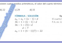 Si entre 1 y 36 existen cuatro medios aritméticos, el valor del cuarto término de la progresión aritmética es: a) 8 b) 22 c) 29 d) 15